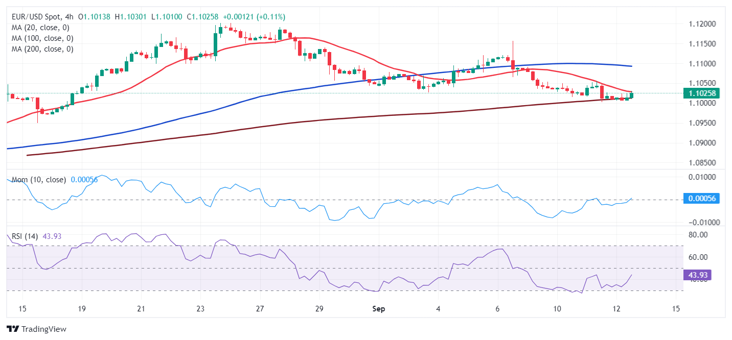 - El EUR/USD rebota modestamente desde cerca de 1.1000, las lecturas técnicas favorecen una ruptura bajista.