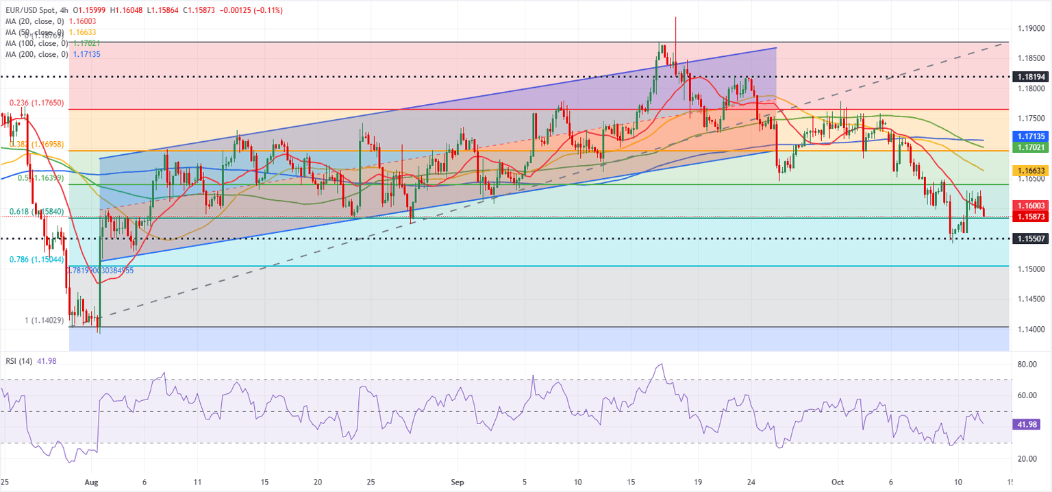 El indicador del Índice de Fuerza Relativa (RSI) en el gráfico de 4 horas se mantiene por debajo de 50 y el EUR/USD cotiza muy por debajo de la media móvil simple (SMA) de 100 días, actualmente ubicada en 1.1635, reflejando la vacilación de los compradores.