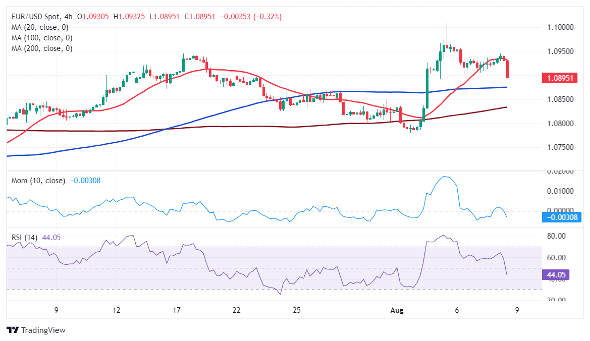 - El EUR/USD se vuelve bajista en el corto plazo, apunta a extender su caída.