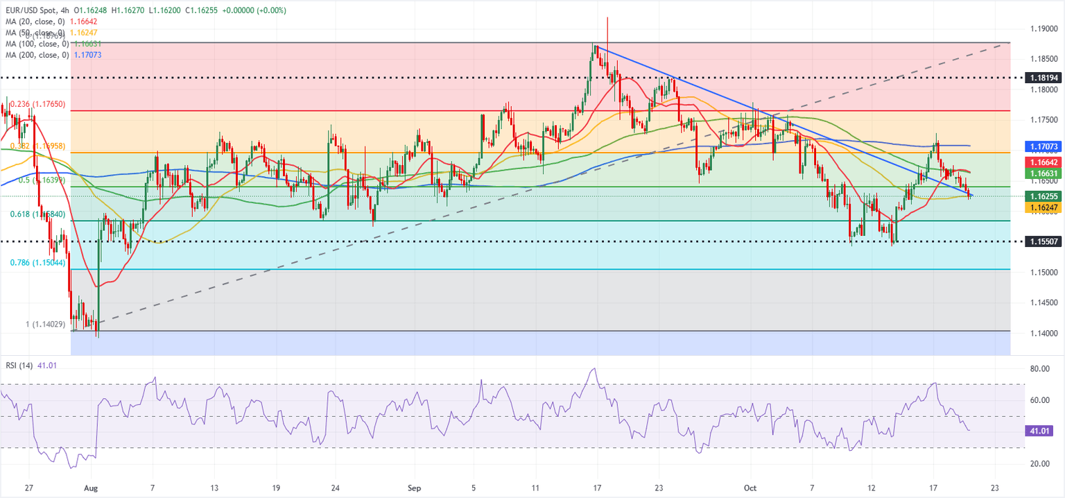 El EUR/USD cerró por debajo de la media móvil simple (SMA) de 100 días, actualmente ubicada en 1.1650, y el indicador del Índice de Fuerza Relativa (RSI) en el gráfico de 4 horas cayó por debajo de 50, apuntando a una tendencia bajista en las perspectivas a corto plazo.