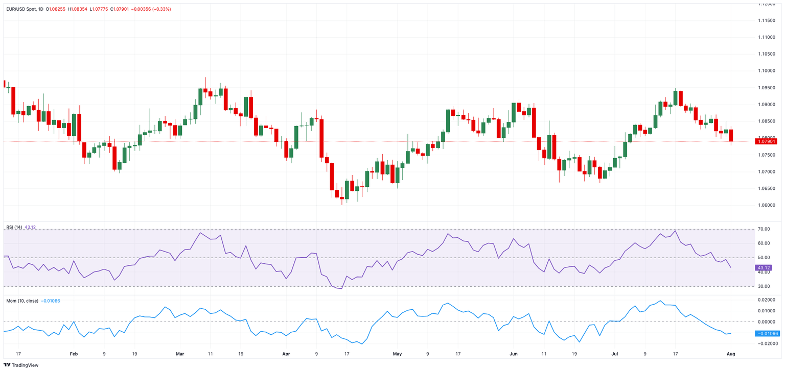 - El EUR/USD cayó a nuevos mínimos cerca de 1.0780 el jueves.