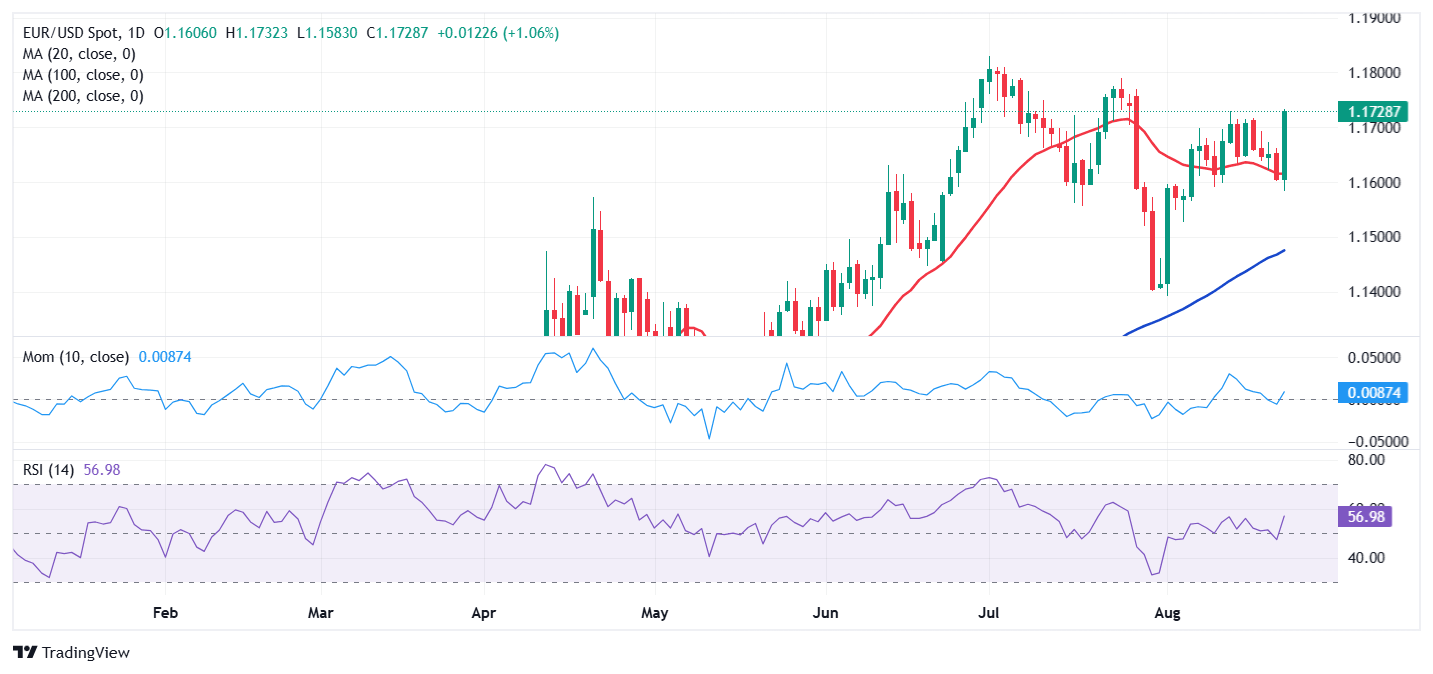 El gráfico diario del par EUR/USD también es alcista. Los indicadores técnicos rebotaron desde alrededor de sus líneas medias, manteniendo pendientes sólidas hacia arriba. A lo largo de la semana, los compradores han defendido la baja en torno a una SMA de 20 ligeramente bajista, actualmente en torno a 1.1610. Una SMA de 100 alcista, mientras tanto, proporciona un soporte dinámico relevante en torno a 1.1480.