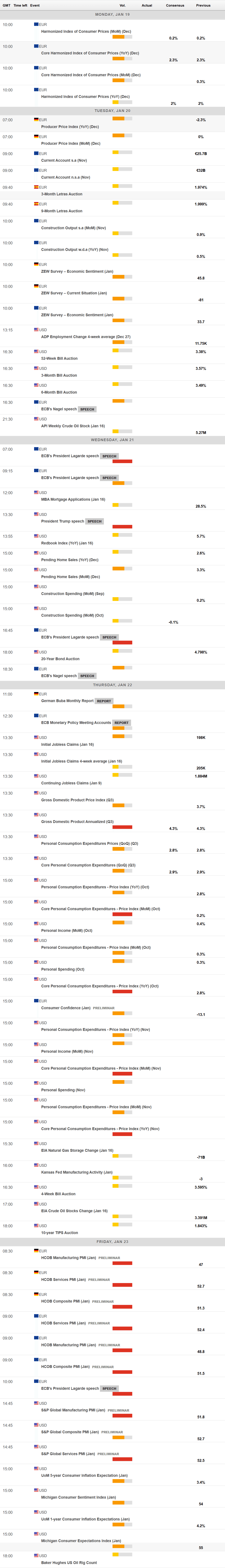 Mientras tanto, el Foro Económico de Davos comenzará el lunes, con discursos de la presidenta del Banco Central Europeo (BCE), Christine Lagarde, y otros responsables políticos de alto nivel de todo el mundo.