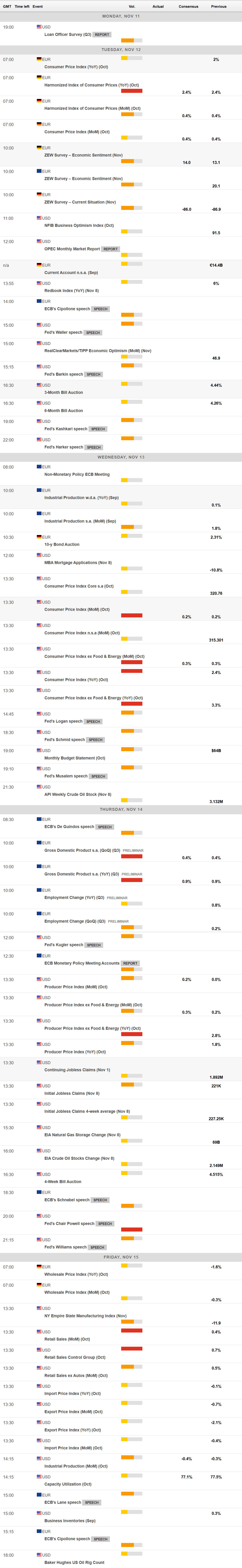 Los inversores observarán cuidadosamente las próximas publicaciones macroeconómicas, ya que Alemania y EE.UU. publicarán nuevas cifras de inflación. Alemania publicará la estimación final del Índice Armonizado de Precios al Consumidor (HICP) de octubre, mientras que EE.UU. revelará el Índice de Precios al Consumidor (CPI) de octubre. Además de eso, la UE publicará la segunda estimación del Producto Interior Bruto (PIB) del tercer trimestre y EE.UU. publicará el Índice de Precios de Producción (PPI) de octubre y las ventas minoristas del mismo mes.