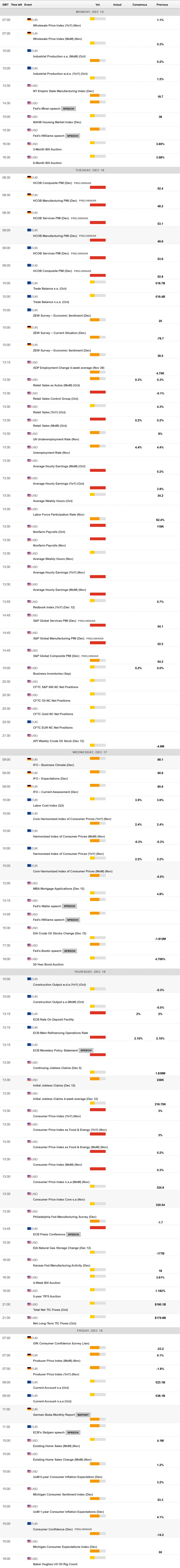 Días ocupados se avecinan, con múltiples publicaciones de primer nivel de ambas orillas del Atlántico. El Hamburg Commercial Bank (HCOB) y S&P Global publicarán la estimación preliminar de los Índices de Gerentes de Compras (PMI) de diciembre para la UE y EE.UU. el martes. El mismo día, EE.UU. publicará las Ventas Minoristas de octubre y el informe de Nóminas no Agrícolas (NFP) de noviembre, que también incluirá algunos datos de octubre.