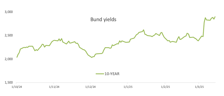 De hecho, el canciller en espera Friedrich Merz anunció que había ganado el apoyo de los Verdes para una importante iniciativa de endeudamiento, allanando el camino para que el parlamento saliente la apruebe la próxima semana. El bloque conservador de Merz y los Socialdemócratas ya habían propuesto un fondo de infraestructura de 500.000 millones de euros junto con importantes reformas de endeudamiento para fortalecer la defensa y reactivar el crecimiento en la economía más grande de Europa. Con los Verdes ahora a bordo, tienen la mayoría de dos tercios necesaria para enmendar la constitución.