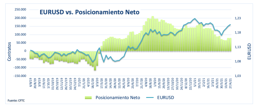 En el frente especulativo, las posiciones compradoras netas en el euro han aumentado a niveles registrados a fines de marzo durante la semana finalizada el 27 de abril, de acuerdo con el último reporte de CFTC.