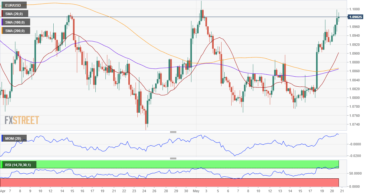 - EUR/USD a punto de desafiar el nivel psicológico de 1.1000, el repunte podría continuar hacia 1.1120.
