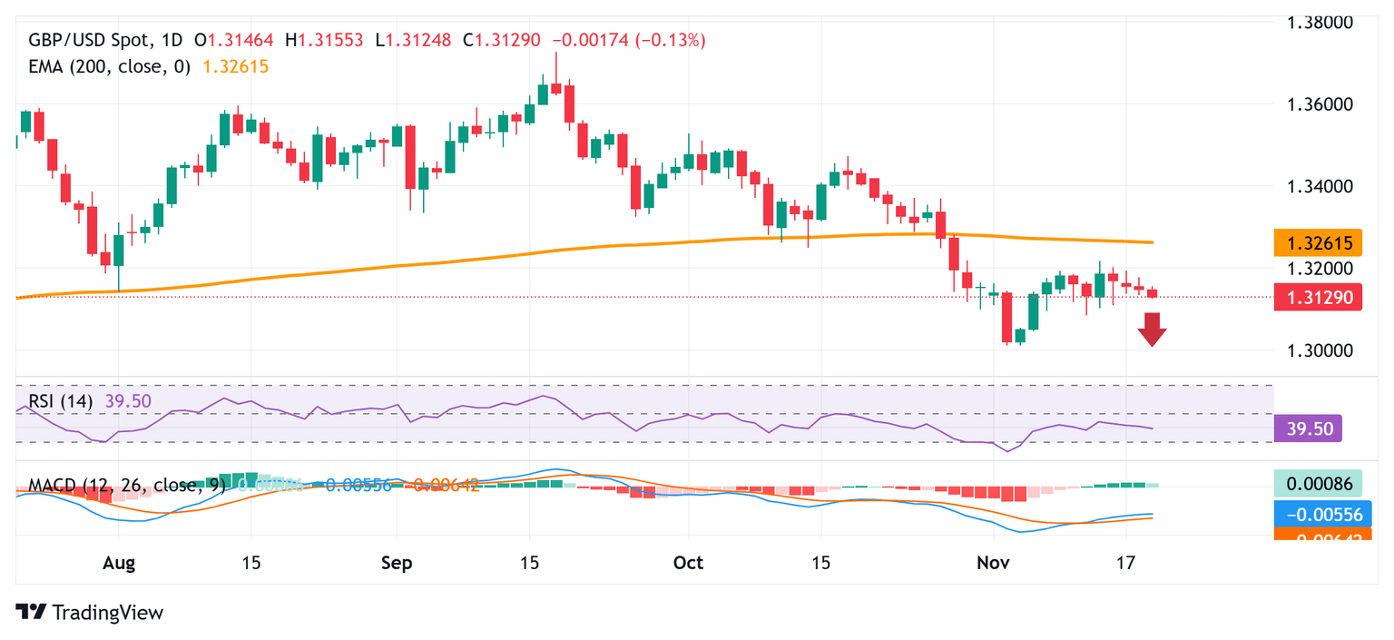 Esto ocurre en medio de la incertidumbre en torno al Presupuesto de Otoño de la Ministra de Finanzas del Reino Unido, Rachel Reeves, el 26 de noviembre, lo que contribuye a limitar el par GBP/USD. Reeves había planeado aumentar las tasas del impuesto sobre la renta, pero abandonó la propuesta tras recibir mejores pronósticos de la Oficina de Responsabilidad Presupuestaria (OBR), que indicaron que la brecha fiscal estaba más cerca de los 20.000 millones de libras en lugar de los 30.000 millones temidos originalmente. Sin embargo, la reacción en el mercado de bonos refleja preocupaciones sobre la política fiscal en medio de un contexto económico más amplio desafiante de cara a 2026. Esto, a su vez, favorece a los bajistas del GBP y podría continuar actuando como un viento en contra para el par GBP/USD.