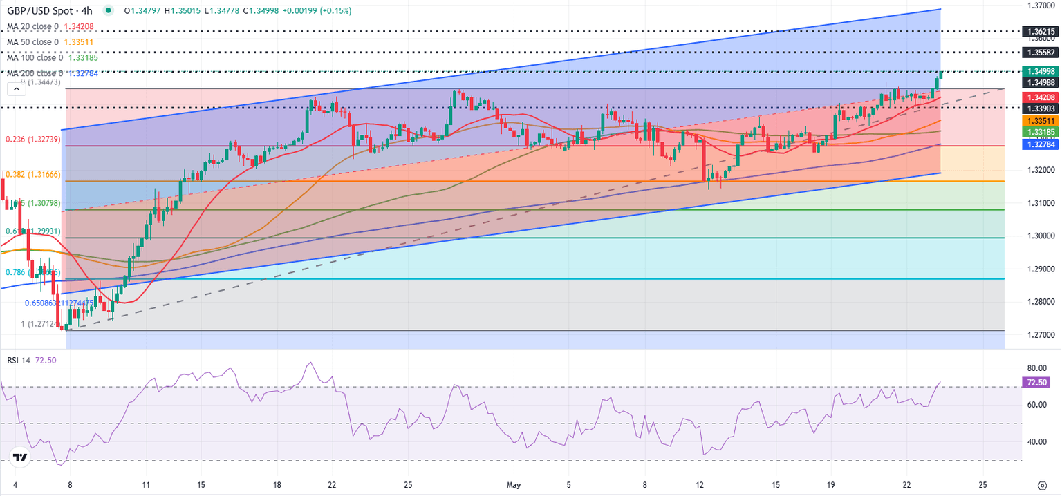 - El GBP/USD cotiza en su nivel más alto desde febrero de 2022 cerca de 1.3500.