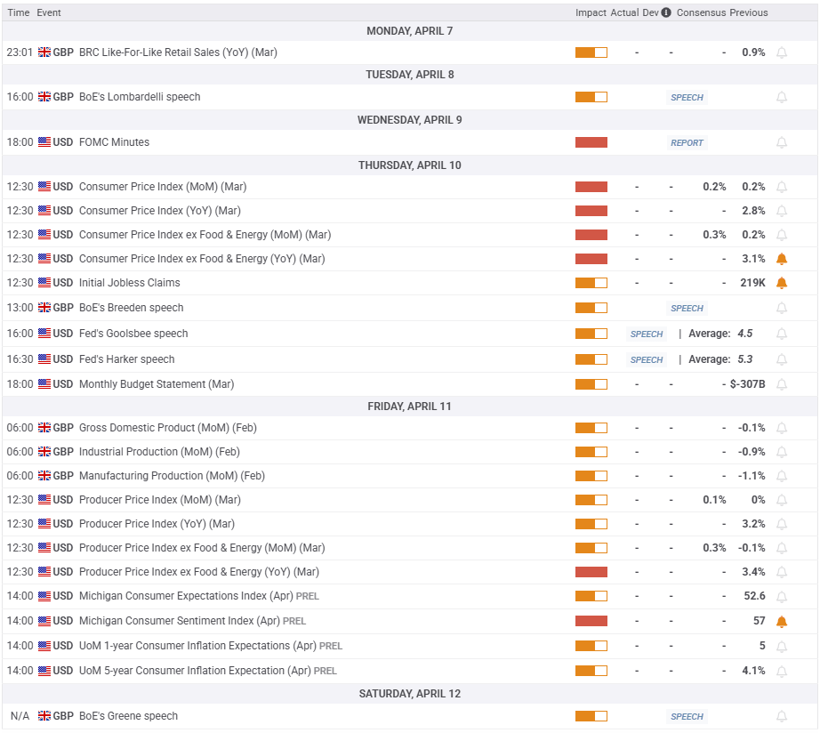 El viernes se presentarán los números de crecimiento e industriales del Reino Unido para febrero. Más tarde en el día, se publicarán el Índice de Precios al Productor (PPI) de EE.UU. y los datos preliminares de Sentimiento del Consumidor y Expectativas de Inflación de Michigan.