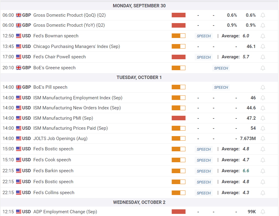 El lunes comienza con fuerza, ya que el presidente de la Fed, Jerome Powell, participará en una discusión moderada titulada "Una visión desde la Junta de la Reserva Federal" en la Reunión Anual de la Asociación Nacional de Economía Empresarial en Nashville. Seguirá el discurso de la responsable de políticas del BoE, Megan Greene.