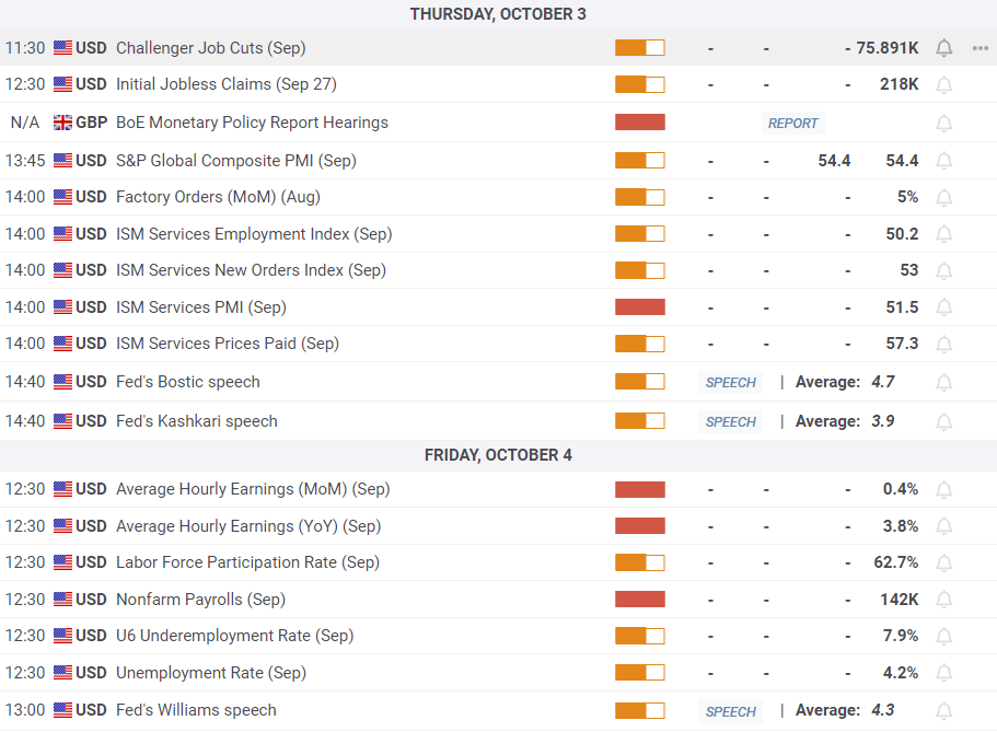 El PMI de servicios del ISM de EE.UU. se informará el jueves, mientras que la atención de los operadores se centrará en las importantes Nóminas No Agrícolas (NFP) programadas para el viernes.
