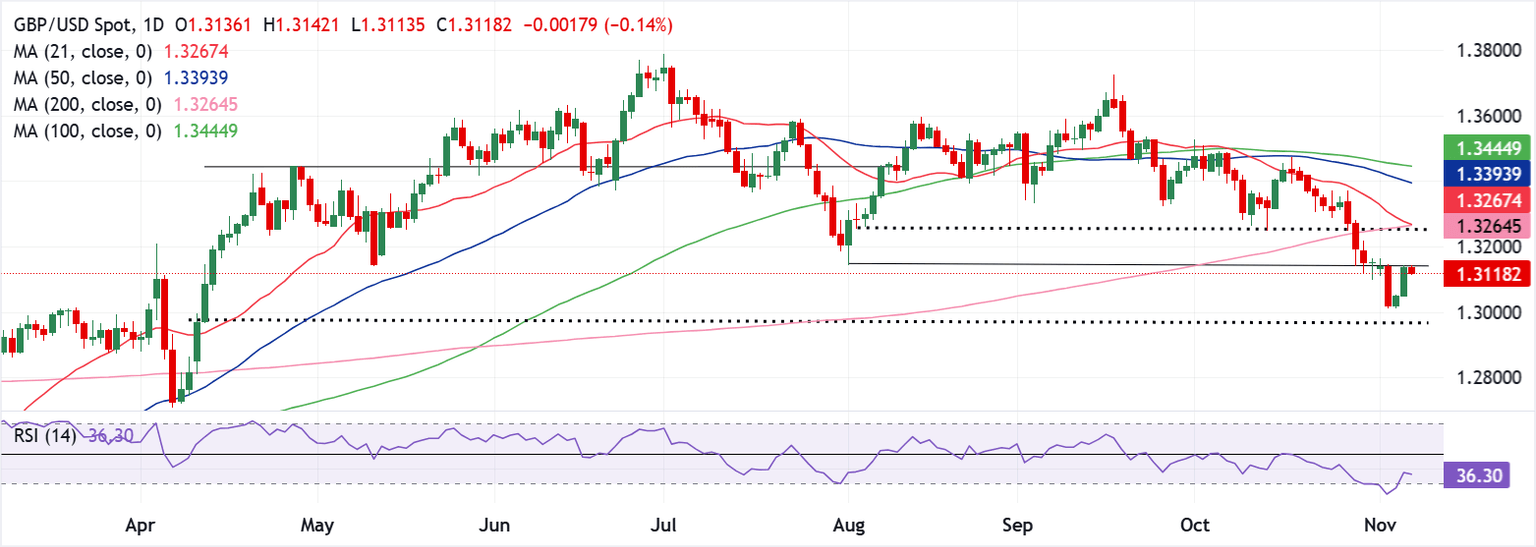 Al acercarse el fin de semana, el USD volvió a estar bajo presión de venta renovada y ayudó al GBP/USD a subir. El informe mensual publicado por la Universidad de Michigan (UoM) mostró que el Índice de Sentimiento del Consumidor cayó a 50.3 en noviembre desde 53.6 en octubre.
