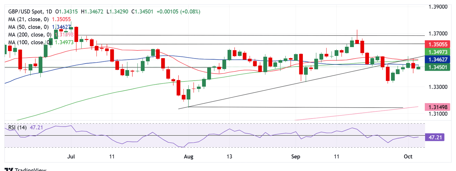 El GBP/USD fracasó en sus intentos de recuperar las medias móviles simples (SMA) diarias clave, cediendo la crítica SMA de 50 días, ahora en 1.3462, después de haber enfrentado rechazos alrededor de 1.3500 en múltiples ocasiones.