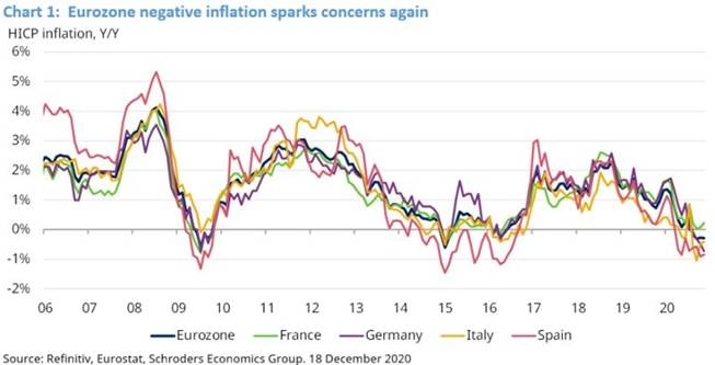 Noviembre de 2020 fue el cuarto mes consecutivo en el que la inflación general de la eurozona, utilizando el índice armonizado de precios al consumo (IAPC), fue negativa. La respuesta a la pandemia del coronavirus ha causado la crisis económica más severa en todo el continente desde la Segunda Guerra Mundial.
