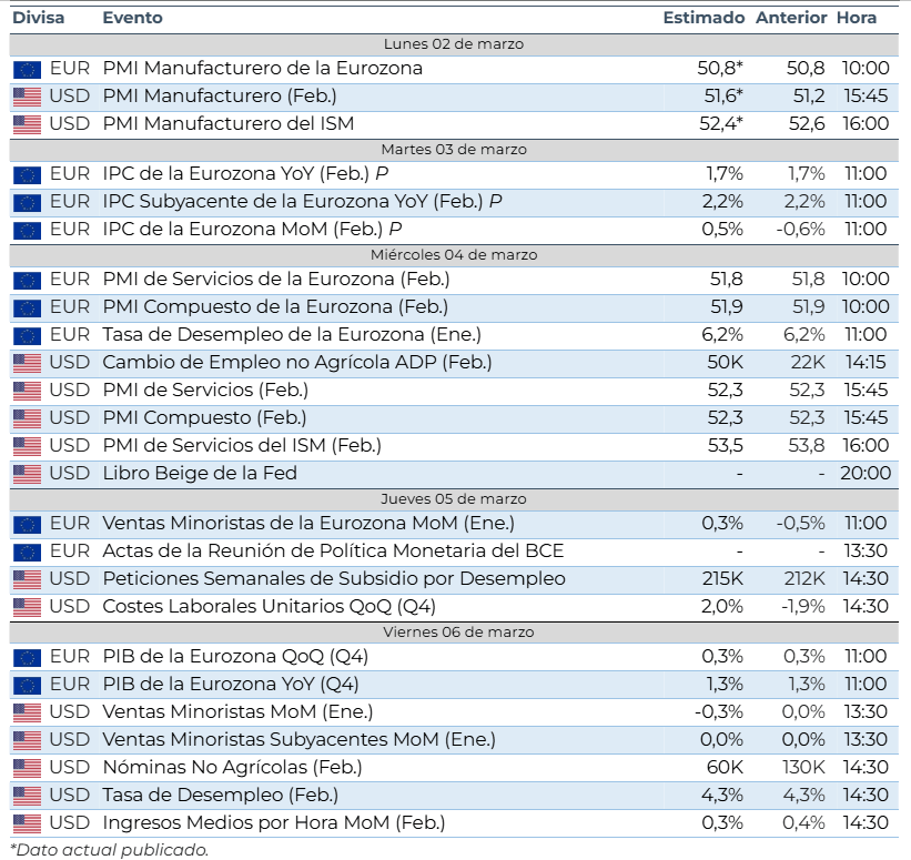 El IPC de enero se situó en línea con lo esperado: 1,7% general y 2,2% subyacente en términos anuales. El dato mensual (-0,6%) refleja una dinámica de bajada de precios que consideramos frágil, especialmente ante el repunte del precio de la energía derivado del conflicto en Oriente Medio, lo que condiciona el margen de actuación del Banco Central Europeo.