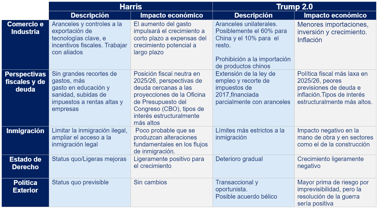 - La economía estadounidense sigue en vías de un aterrizaje suave, aunque las perspectivas para el próximo año estarán muy influidas por los resultados electorales.