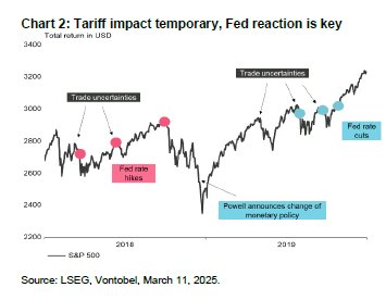 Dado que la renta variable estadounidense en general (y los valores tecnológicos en particular) suelen estar acostumbrados al éxito, ¿cómo es posible que se haya producido una caída tan estrepitosa? En nuestra opinión, todo se resume a «aranceles, aranceles, aranceles». La retórica agresiva de Donald Trump y su enfoque de «stop-start» en lo que respecta a los aranceles ha creado incertidumbre entre los consumidores, las empresas y, en última instancia, también entre los inversores en renta variable. Las expectativas de inflación de los consumidores se han disparado, mientras que muchas empresas han aparcado sus planes de gasto.