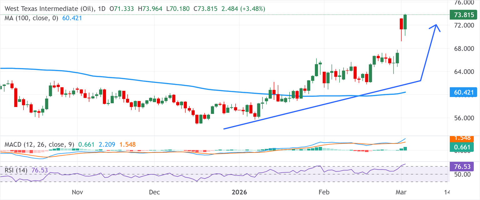 Los precios del petróleo crudo se dispararon al nivel más alto desde junio de 2025 por los temores de un conflicto en expansión y el cierre efectivo del estrecho de Ormuz.