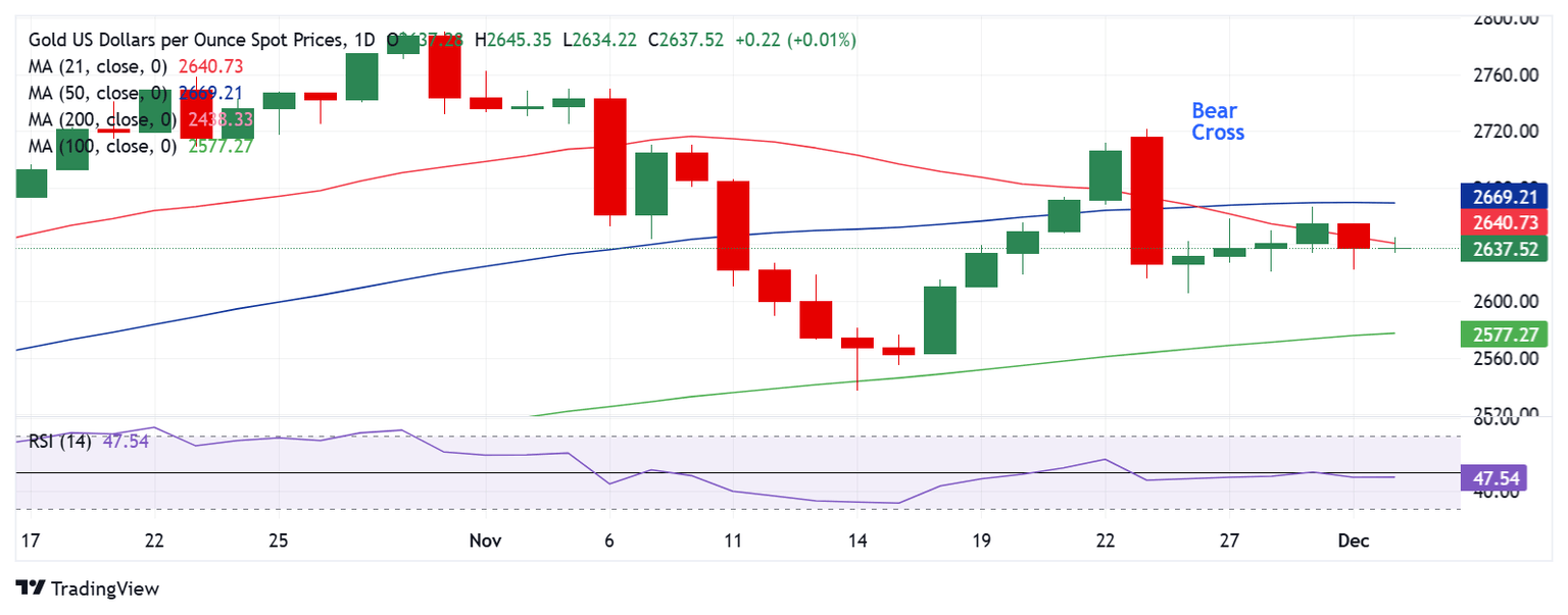 Habiendo cerrado por debajo del soporte crítico de la media móvil simple (SMA) de 21 días, ahora en 2.641$, los compradores de Oro parecen reacios a intervenir.