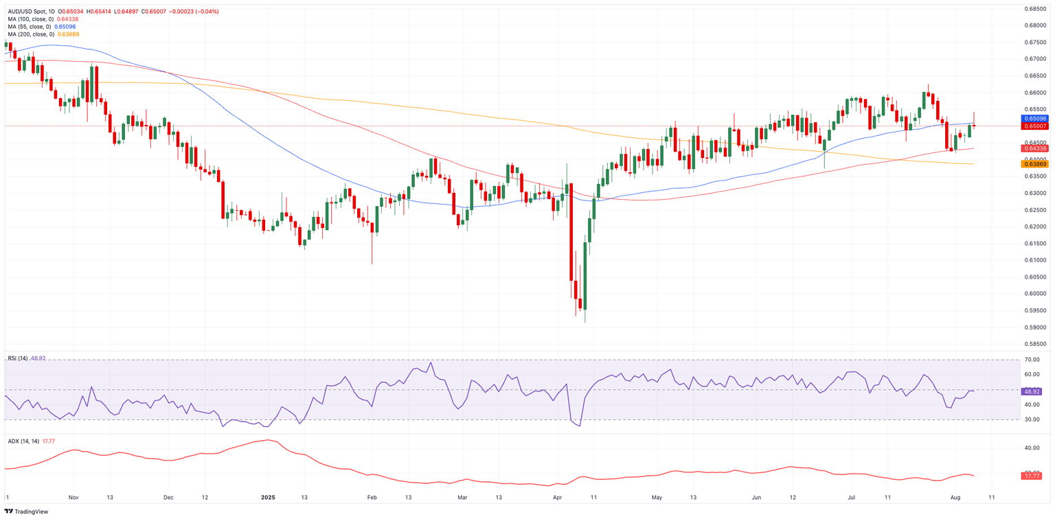 - El AUD/USD se negoció de manera indecisa alrededor del área de 0.6500.