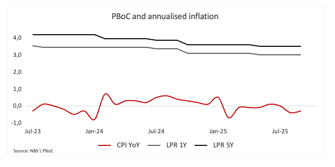 Mientras tanto, el Banco Popular de China (PBoC) mantuvo sus Tasas Preferenciales de Préstamos (LPR) sin cambios en septiembre: la de un año en 3.00% y la de cinco años en 3.50%, en línea con las expectativas.