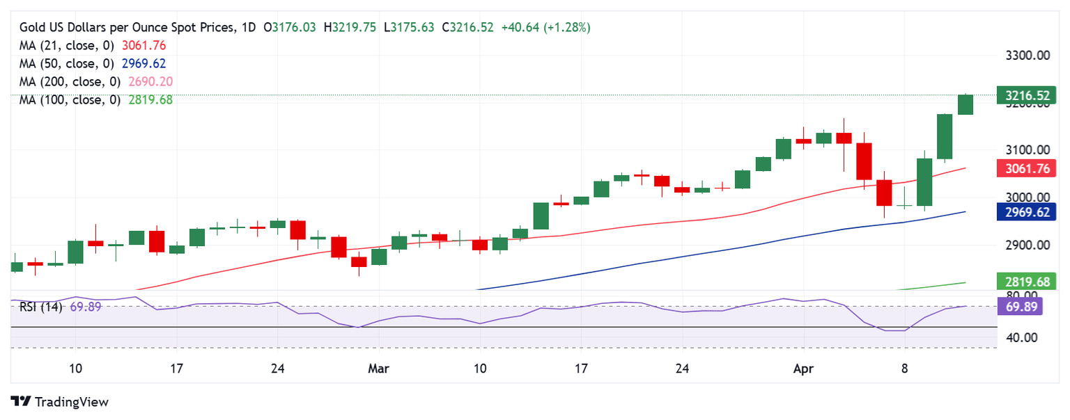 El precio del Oro está cotizando cerca de los máximos históricos por encima de los 3.200$ a primera hora del viernes, reanudando su rally récord. El metal precioso está en camino de registrar una ganancia semanal de aproximadamente 5.5%.