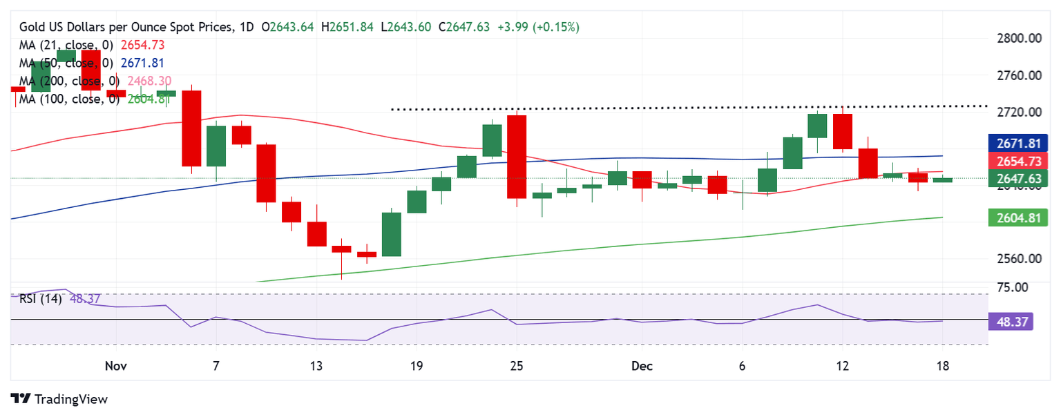 A pesar del último repunte, el precio del Oro permanece en un rango familiar cerca de 2.650$ a primera hora del miércoles. El precio del Oro parece carecer de compromiso alcista en la antesala del enfrentamiento de la Reserva Federal (Fed) de EE.UU.
