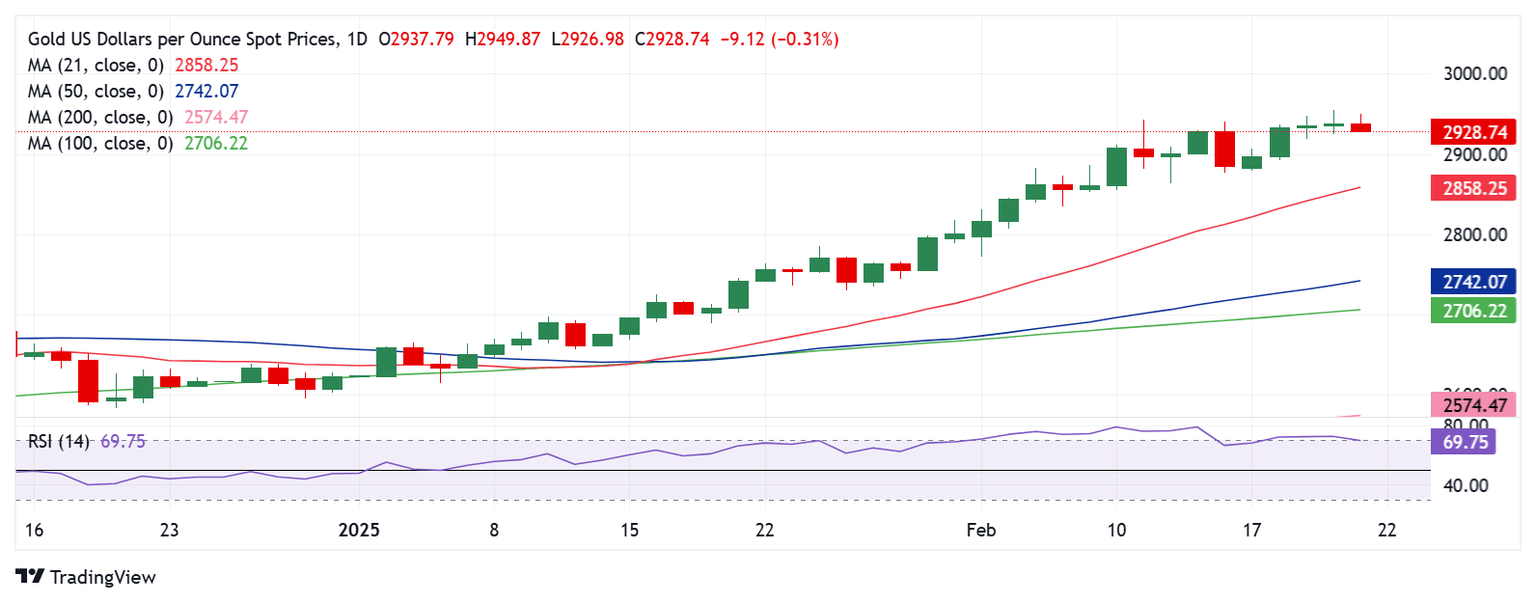 El precio del Oro está en un movimiento correctivo a la baja desde cerca de los máximos históricos de 2.955$ alcanzados el jueves. A pesar del retroceso, el precio del Oro sigue en camino de registrar la octava ganancia semanal consecutiva.