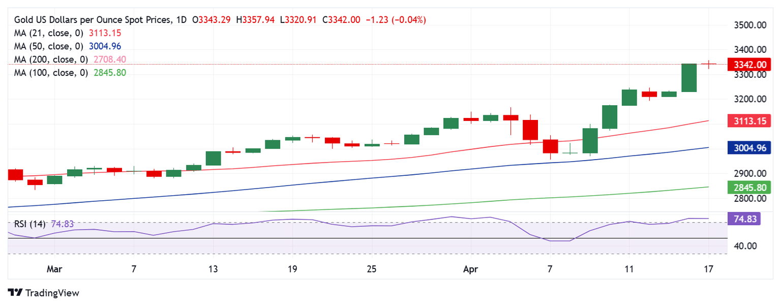- El RSI fuertemente sobrecomprado en el gráfico diario continúa advirtiendo a los compradores de XAU/USD.