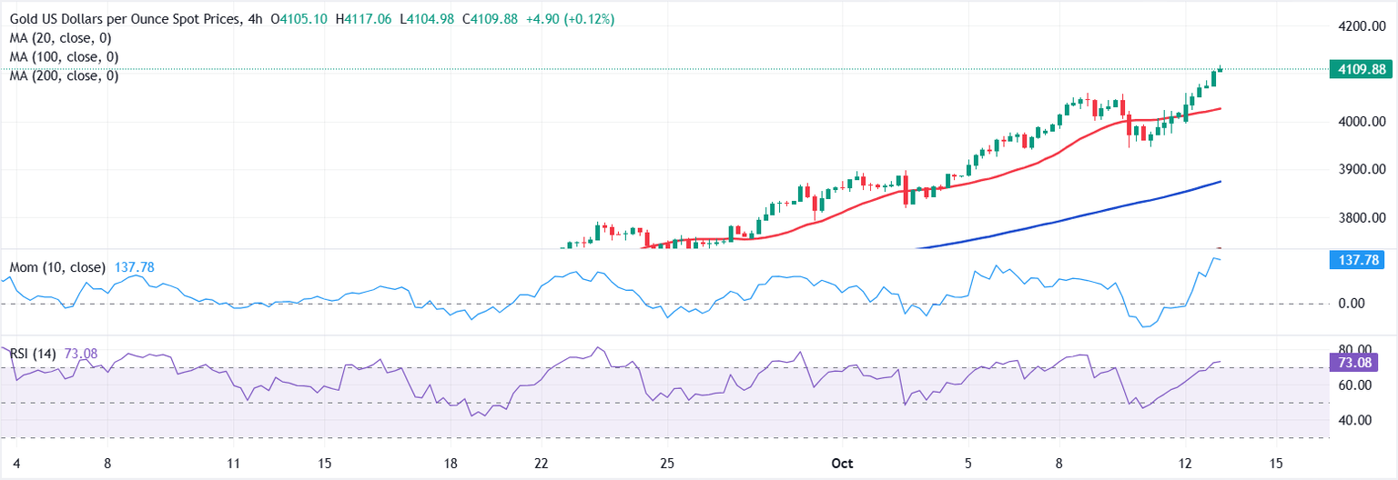 Oro Pronóstico: El avance récord del XAU/USD continúa por encima de 4.100$
