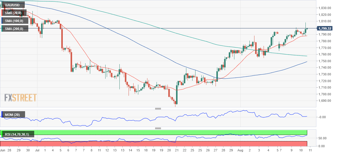- El XAUUSD sigue registrando máximos diarios, pero le cuesta superar los 1.800$.