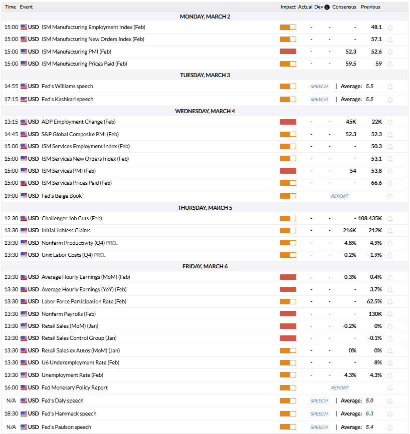 El lunes, el Instituto de Gestión de Suministros (ISM) publicará el informe del Índice de Gerentes de Compras (PMI) de Manufactura para febrero. En caso de que el PMI general se sitúe por debajo de 50 y apunte a una contracción en la actividad empresarial del sector manufacturero, la reacción inmediata podría perjudicar al USD y abrir la puerta a un aumento en el XAU/USD.