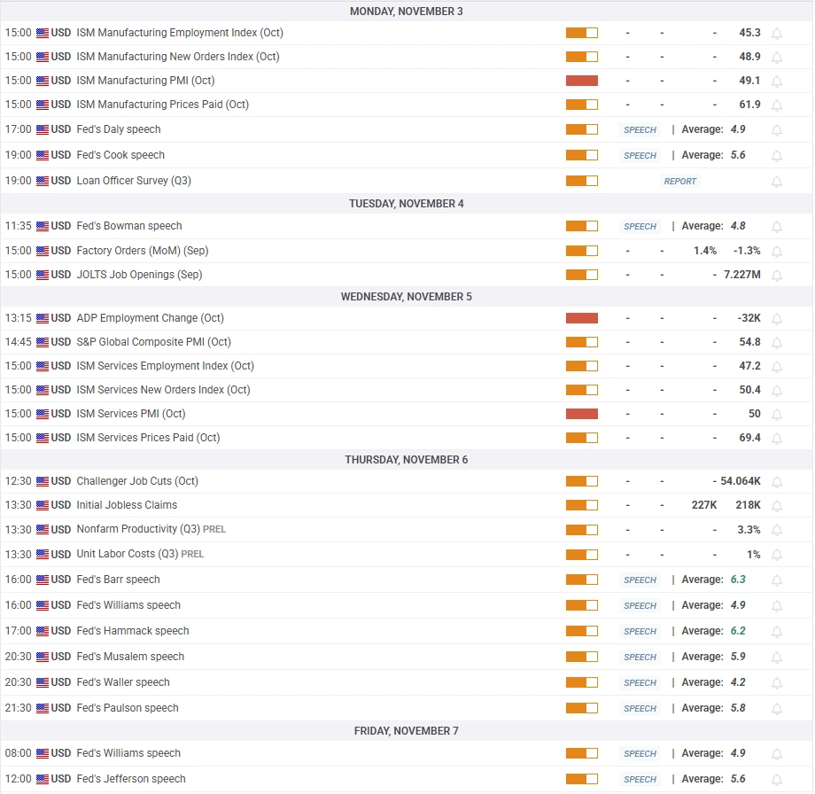 El lunes, el Instituto de Gestión de Suministros (ISM) publicará los datos del Índice de Gerentes de Compras (PMI) manufacturero de octubre. Una mejora significativa en el PMI general y/o en el componente de empleo de la encuesta podría apoyar al USD con una reacción inmediata y hacer que el XAU/USD se extienda a la baja.