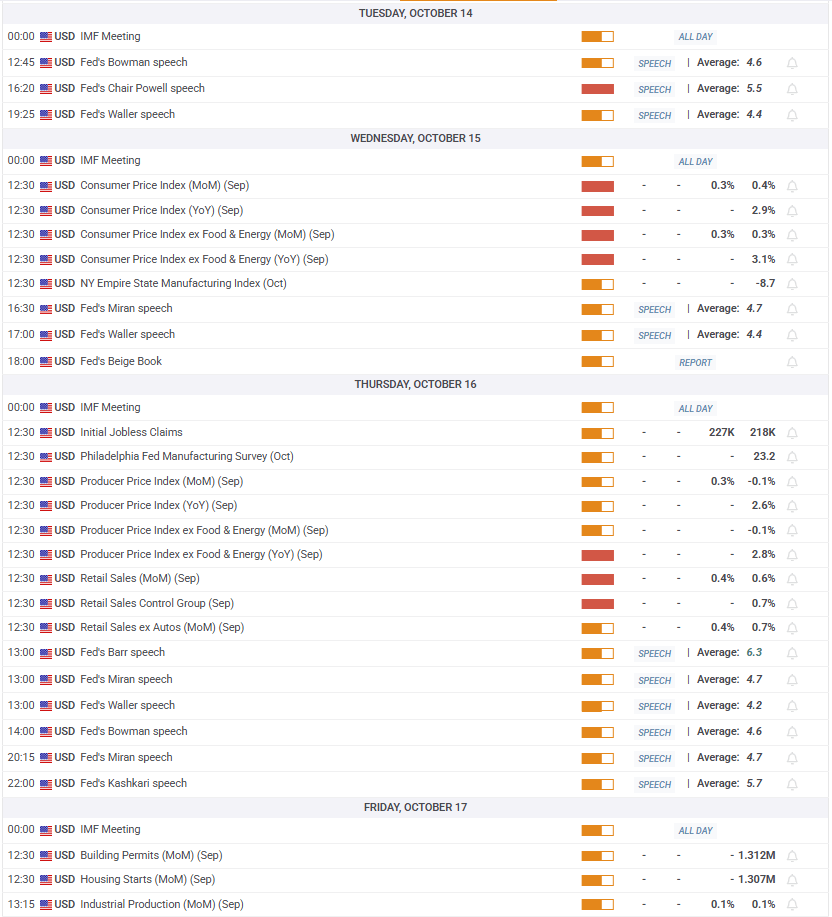 Los comentarios de los funcionarios de la Fed también serán observados de cerca por los participantes del mercado, especialmente si la paralización continúa. Si los funcionarios de la Fed insinúan que necesitarán adoptar un enfoque cauteloso hacia un mayor alivio de la política, citando la falta de datos y la incertidumbre elevada, el Oro podría tener dificultades para adquirir impulso alcista. Por otro lado, el USD podría enfrentar una renovada presión de venta y permitir que el XAU/USD mantenga su posición si los funcionarios de la Fed sugieren que el alivio de la política podría ser la ruta preferida en caso de una prolongada paralización del gobierno y su posible impacto negativo en el empleo y el gasto del consumidor.