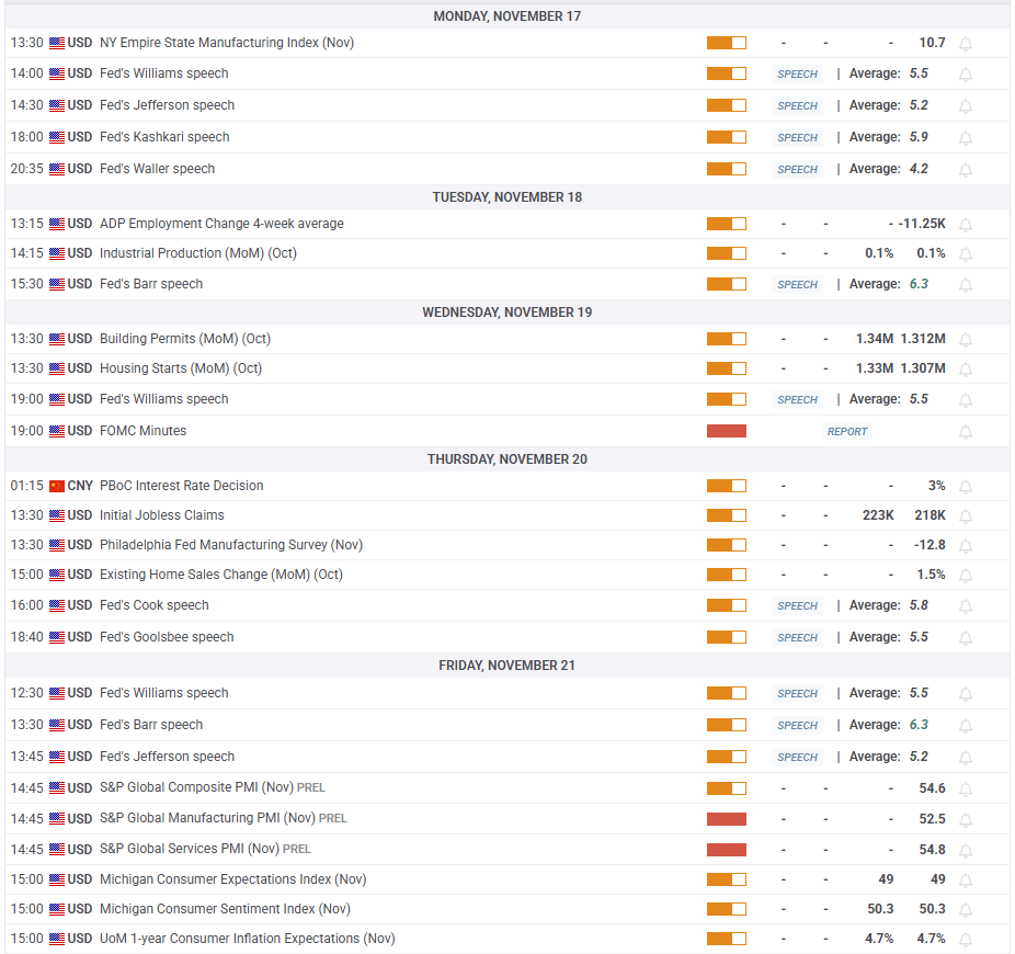 El viernes, S&P Global publicará los informes preliminares del Índice de Gerentes de Compras (PMI) Manufacturero y de Servicios para noviembre. Una lectura en territorio de contracción, por debajo de 50, en cualquiera de los PMI podría pesar sobre el USD y elevar el XAU/USD. Por otro lado, el Oro podría estar bajo presión bajista si los informes de PMI muestran que la actividad empresarial en el sector privado continuó expandiéndose a un ritmo saludable.