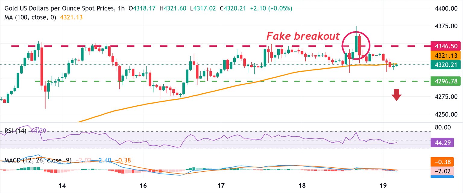 La ruptura falsa durante la noche a través de la zona de suministro de 4.350$-4.355$ y una posterior caída por debajo de la media móvil simple (SMA) de 100 horas el viernes favorecen a los bajistas del XAU/USD. Sin embargo, los osciladores mixtos en los gráficos horarios y diarios hacen prudente esperar algo de venta de continuación por debajo de la marca de 4.300$ antes de posicionarse para pérdidas más profundas. El lingote podría caer entonces a la región de 4.272-4.271$, o el mínimo semanal. Esto es seguido por el punto de resistencia horizontal de 4.260$-4.255$ que se ha convertido en soporte, que, si se rompe, sugeriría que el precio del Oro ha alcanzado su punto máximo y expondría la cifra redonda de 4.200$.