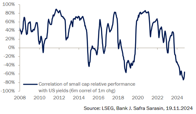 Gráfico 3: La correlación inversa de las small caps con los tipos es una anomalía