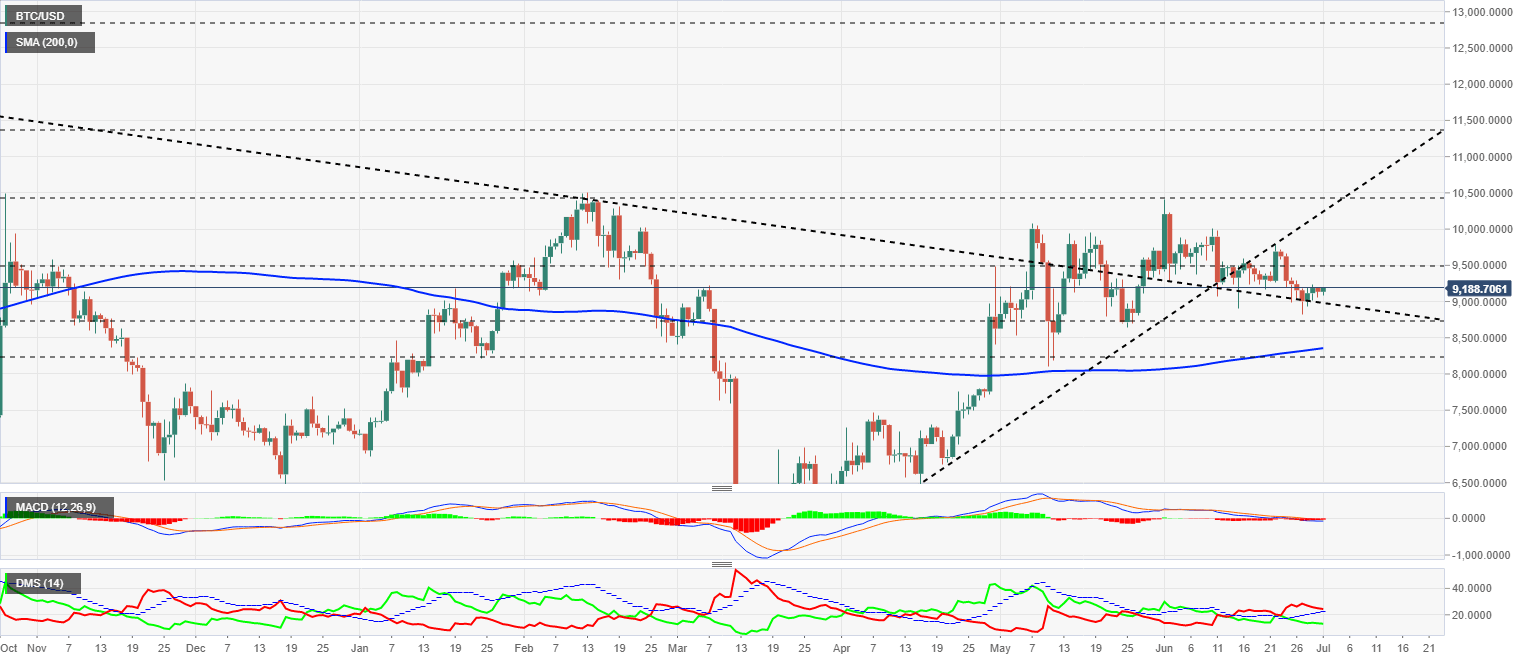 El par BTC/USD cotiza en estos momentos en el nivel de precio de $9145 y se aleja un poco del soporte técnico de la zona triangular expansiva actual. Si el precio del par BTC/USD pierde este nivel y se desplaza al escenario inferior, el mercado podría ver ventas muy importantes.
