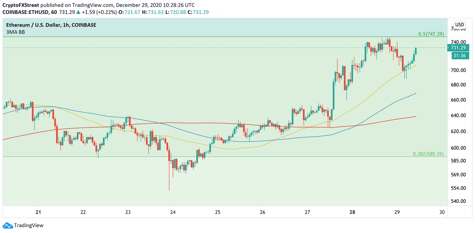 - El Ethereum se retiró del máximo reciente de 750$ pero se mantuvo por encima de 700$.