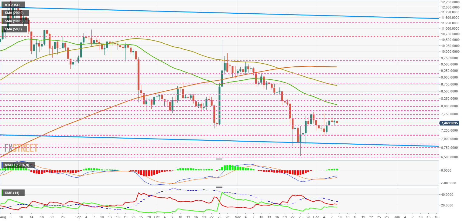 Por debajo del precio actual, el primer nivel de soporte está en $7,400, entonces el segundo en $7,100 y el tercero uno en $6,850.