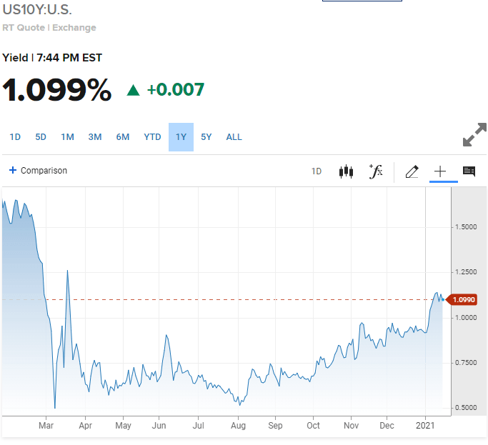 La Fed ha sido igualmente silenciosa, con el Presidente Jerome Powell diciendo que las tasas se mantendrán muy bajas hasta que la economía estadounidense se recupere por completo. Los últimos materiales de proyección del banco mantienen la tasa de fondos federales en su nivel actual de 0.25% hasta finales de 2023.