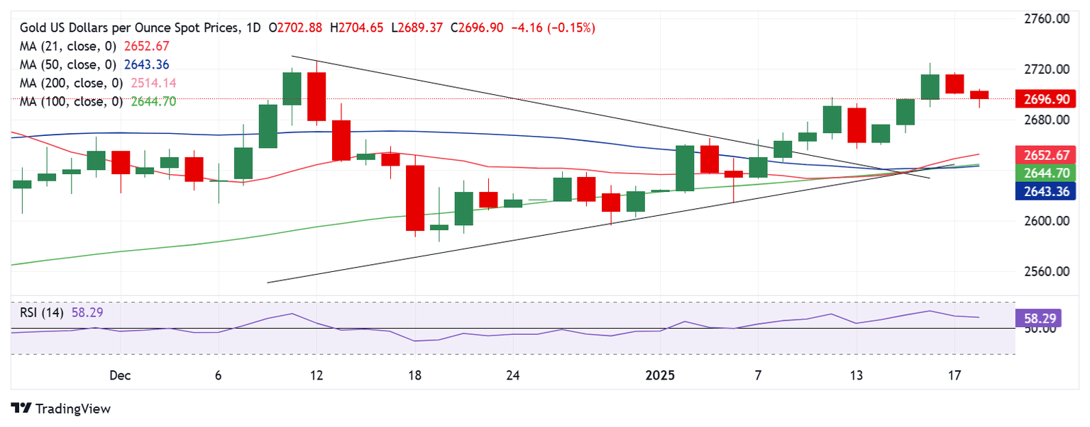 Si la corrección gana fuerza, el precio del Oro podría probar el mínimo del 15 de enero de 2.670$, por debajo del cual se amenazará la SMA de 21 días en 2.653$.