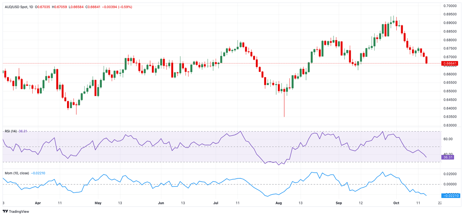 - El AUD/USD mantuvo su tendencia bajista sin cambios por debajo de 0.6700.