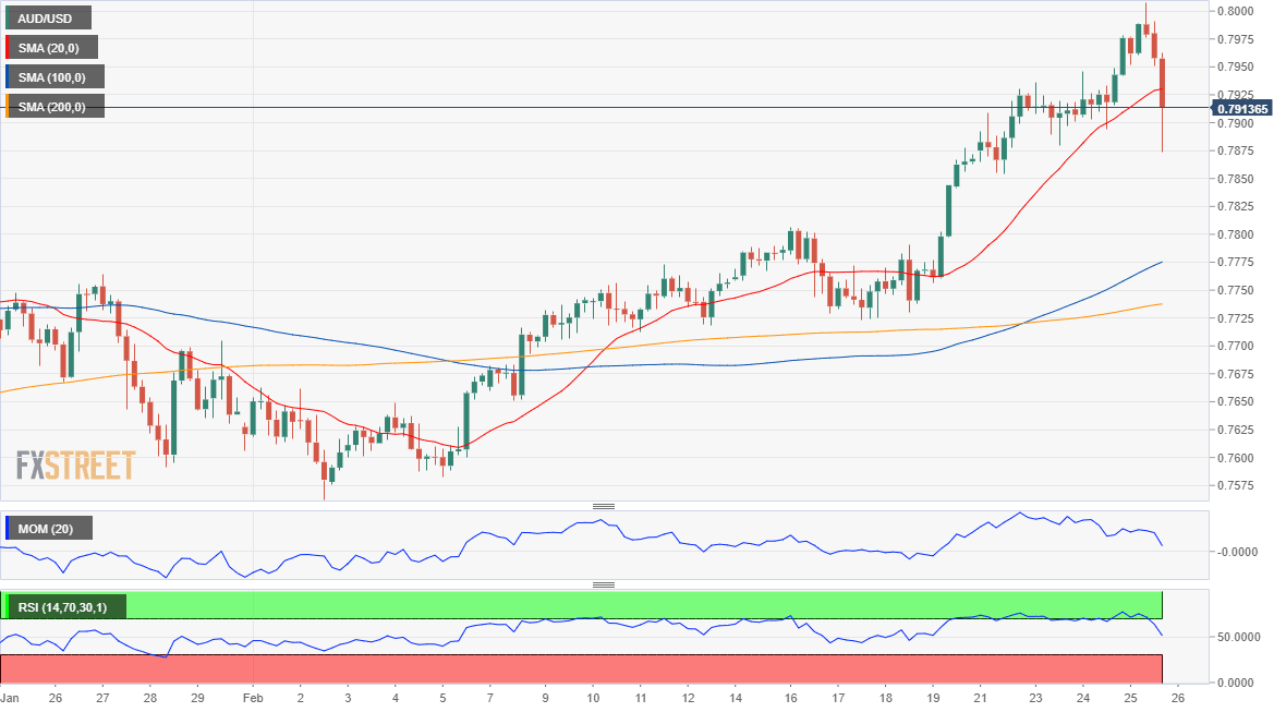 - AUD/USD está en una caída correctiva, se esperan más caídas una vez por debajo de 0.7865.