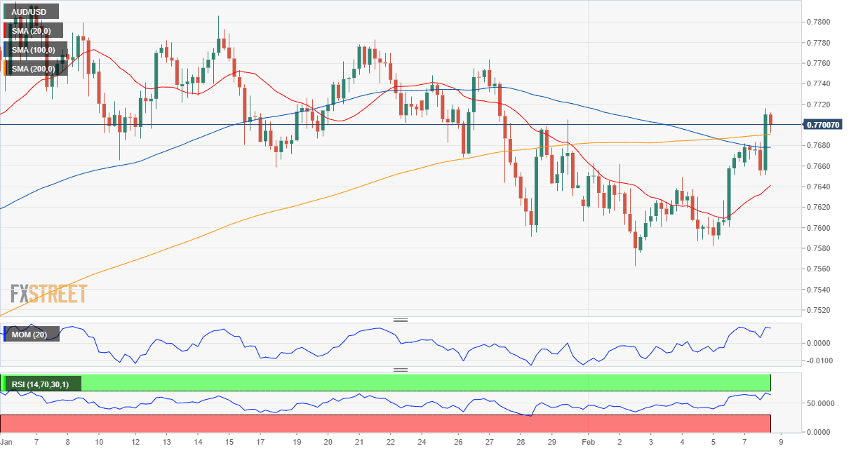 Pronóstico del AUD/USD: Ganando tracción alcista alrededor de 0.7700