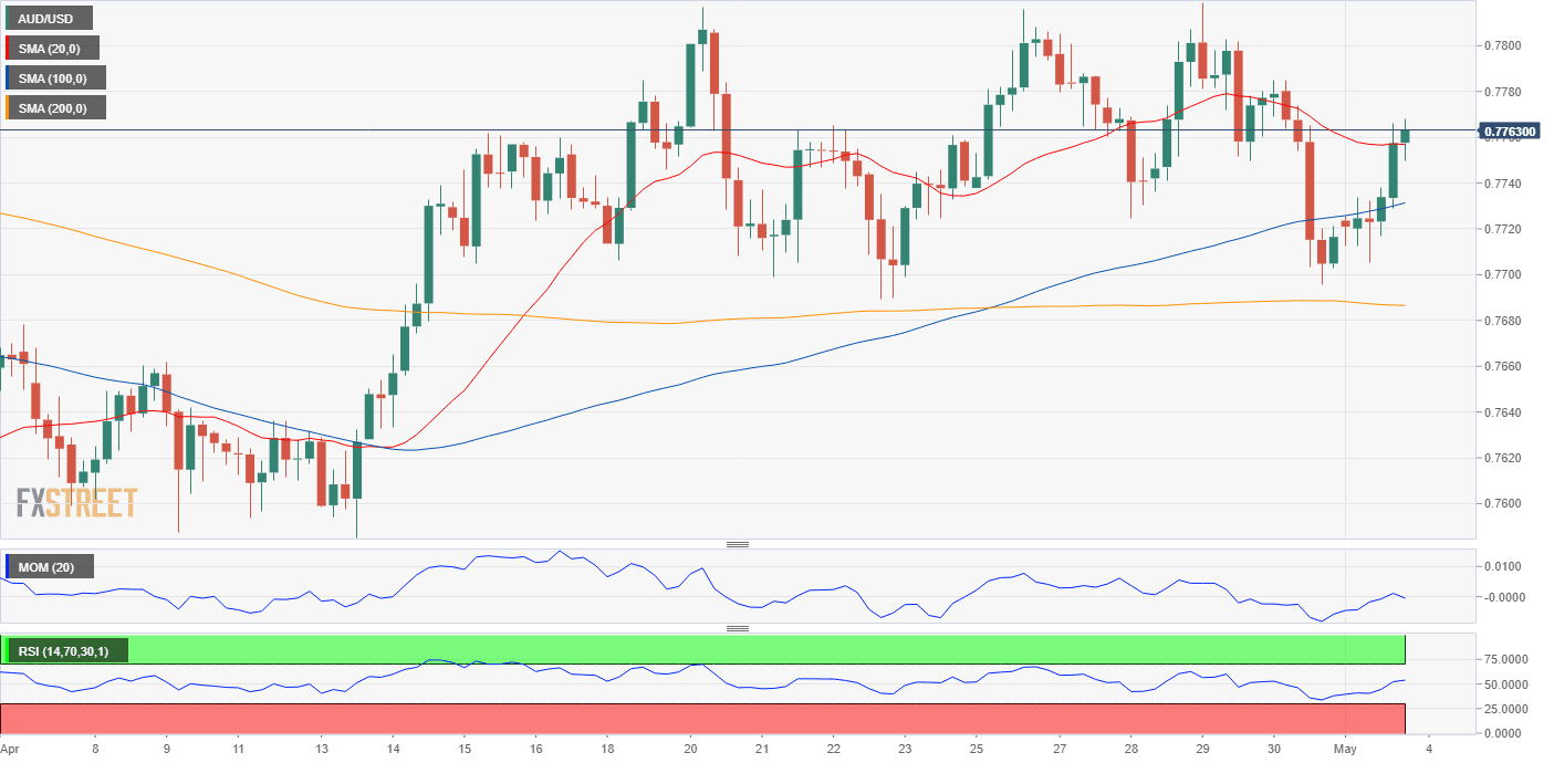 El par AUD/USD se disparó al alza en la apertura semanal, extendiendo su recuperación a medida que avanzaba hasta 0.7765, manteniéndose cerca a medida que el día llega a su fin. El aussie se benefició de la recuperación de las acciones y el resurgimiento de los precios del oro. El metal brillante alcanzó un máximo de 1.797.91$ la onza troy, antes de retroceder modestamente.