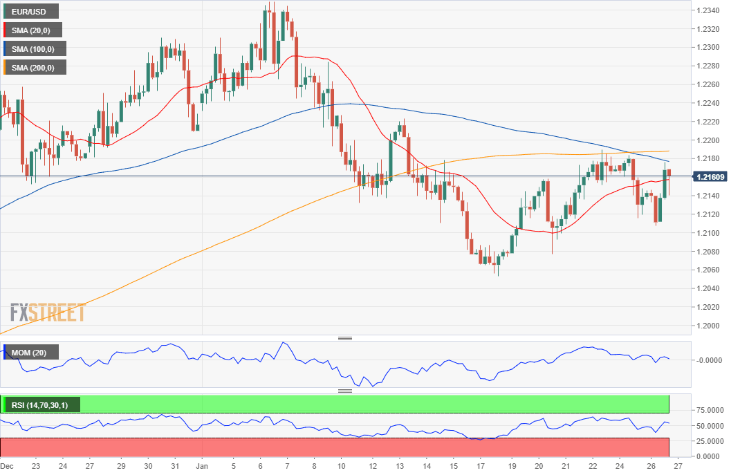 - EUR/USD es neutral en el corto plazo, enfrenta una fuerte resistencia en la región de 1.2180.