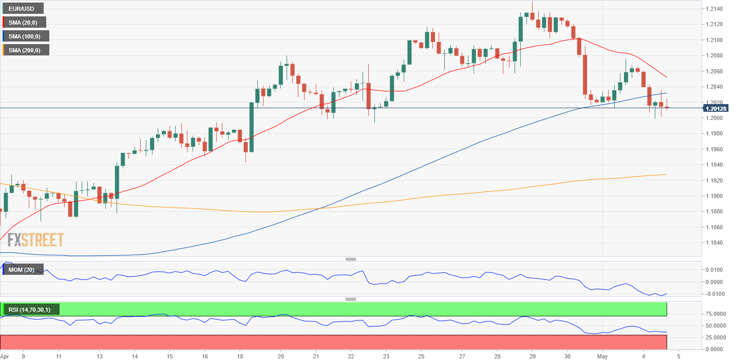 - El EUR/USD está bajo presión y cerca de un nivel crítico de soporte de Fibonacci en 1.1980.